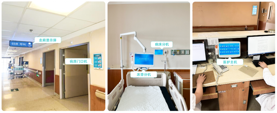 围绕“沟通”问题,中国av 将方案场景划分为:护士站、走廊、病房等区域,每个区域配备相应的智能设备,如护士站主机、走廊显示屏、病房门口机、病床分机、卫生间紧急按钮等硬件,构建高效便捷的沟通流程。