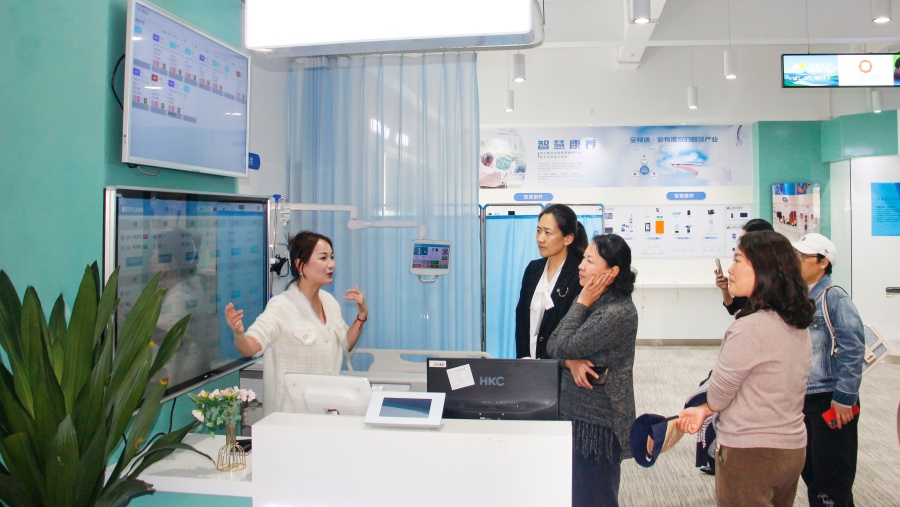 在参观中国av 展厅时,智慧门诊、智慧病区、智慧手术室等业务场景的先进设备和系统应用引起了老师们的浓厚兴趣和高度赞赏,她们认为珠海本地有这样一家专注于智慧医康养产业的公司,对于推动大湾区乃至国内医院的数字化转型具有重要意义。