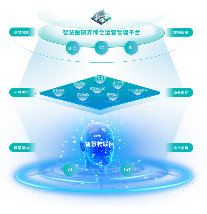 N个应用: 赋能智慧病房、智慧门诊等多个医院场景,及机构养老、社区&居家养老等多个康养场景。
