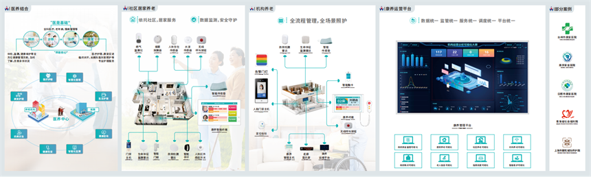 推动“互联网+大养老”生态系统,形成以政府主导的智慧养老服务体系,覆盖医养结合、机构养老、社区养老、居家养老等不同的养老服务模式,打造智慧化解决方案。