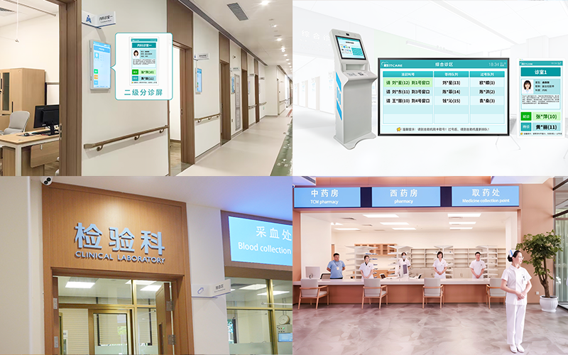 在医疗楼,配置智能报到终端机、等智能硬件,长者可以清楚地知道当前的排队情况,减少了在楼内无序等待的时间。在候诊区、药房等区域,系统可智能显示或语音告知长者何时接受就诊、取药等服务,有效缓解长者的焦虑感。