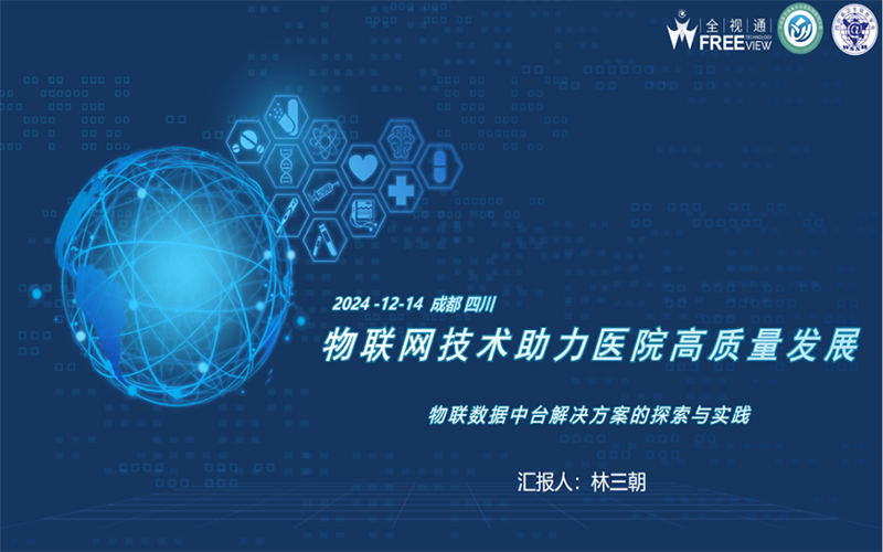 总经理林三朝以《物联网技术助力医院高质量发展》为题做了精彩演讲。林总就物联网技术如何助力医院高质量发展,以及物联数据中台解决方案的探索与实践进行了深入分享。