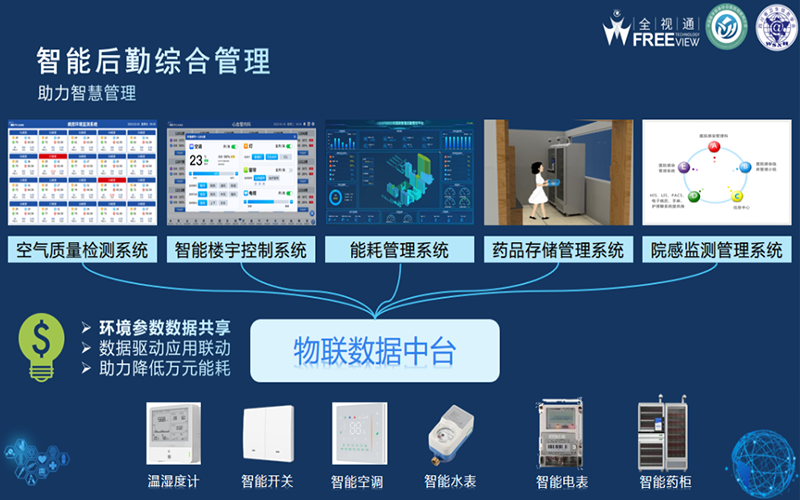 在智能后勤综合管理方面,通过整合空气质量检测系统、智能楼宇控制系统等,实现了环境参数数据共享和数据驱动应用联动,有效降低了医院的能耗成本。