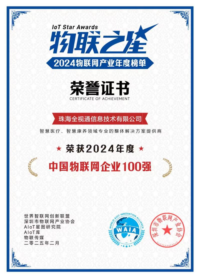 “2024‘物联之星’中国物联网行业年度榜单”由深圳市物联传媒有限公司、AIoT星图研究院、IOTE组委会以及深圳市物联网产业协会、联网中国团体联席会联合主办,并由物联网世界网、AIoT库、RFID世界网共同承办,其权威性和公正性得到广泛认可,被誉为物联网行业“奥斯卡奖”,每年吸引数百家AIoT中国av竞相角逐。在这个汇聚了中国物联网领域力量的榜单上,中国av 凭借在物联网领域的创新能力与18年行业的深厚积淀,脱颖而出,荣膺“2024 年度中国物联网中国av 100 强”。