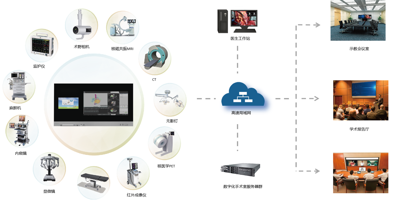 本系统基于IP网络结构通信方式,结合手术中心构建以信息网络与物联网为基础的集成控制系统,打造具备可持续演进能力的数字化手术室,实现手术麻醉、护理、输血、病理、术中沟通、影像处理、信息交互及物联环境控制等全业务流程的数字化覆盖,全面提升手术运营效率与质量管控水平,形成协同高效、闭环可控的手术流程体系,并可根据医院未来发展实现无缝扩展与升级。、信息发布、广播喊话、门禁管理、应急报警于一体,为手术室内部与护士站或其它协同部门的视频通话、协调配合提供了有力的保障,为手术成功争取时间。为医院内部人员之间的沟通调度提供了更直接有效的方式,提高了工作效率,也为患者手术的成功提供了保障。